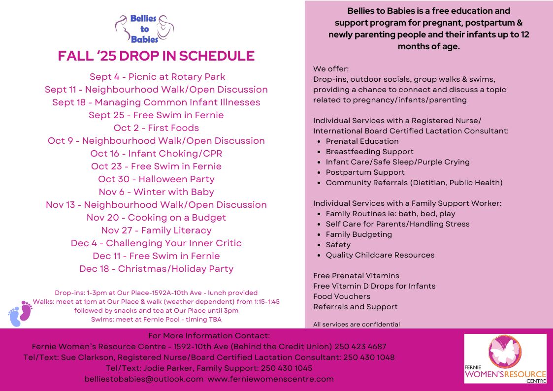 The Bellies to Babies program is a free education and support program for pregnant, postpartum and newly parenting people and their infants.
